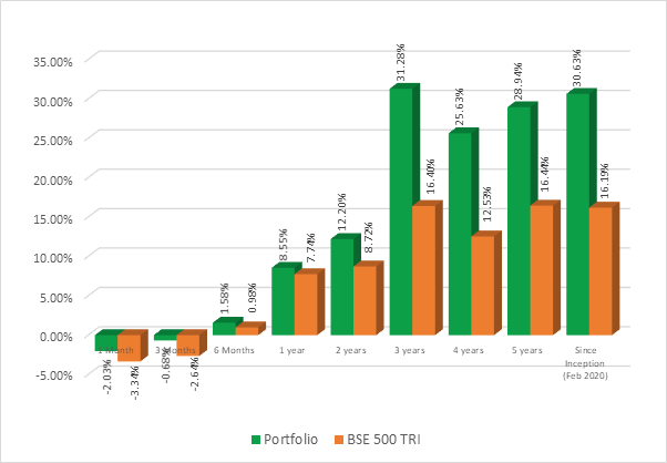 *Returns over 1 year period are annualized. Returns are adjusted for inflows/outflows. Performance is calculated after expenses and it is TWRR.